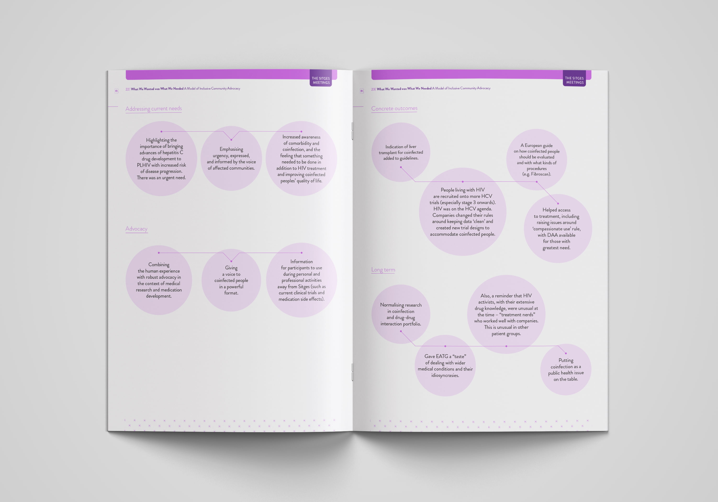 The Sitges meetings employed a collaborative approach to find concrete solutions, involving community representatives and activists from the HIV and hepatitis field, regulators, physicians, researchers and the pharmaceutical industry. Emphasising the urgency to find effective treatments supported by clinical trial data, the Sitges meetings raised awareness about HIV/HCV comorbidity. This led to changes in exclusion criteria for clinical trials and revisions to EMA guidelines. These meetings set the ground for building meaningful connections between stakeholders, particularly within the HIV and hepatitis communities, as well as between the community, pharmaceutical companies and physicians.